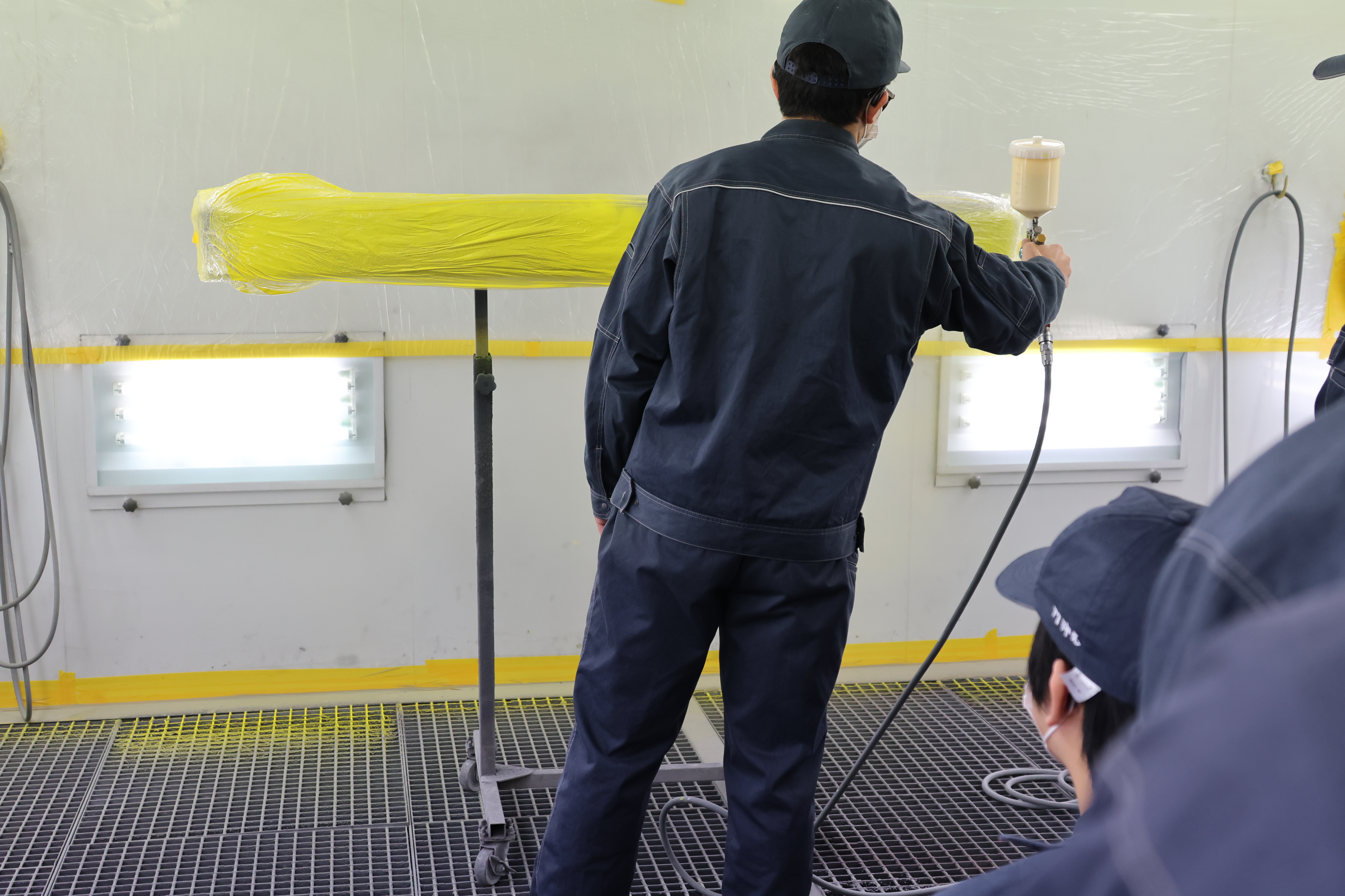塗装では、シンナーを使用しない環境配慮型塗料や、空気循環が徹底された塗装ルームでの塗装体験を実施しました。