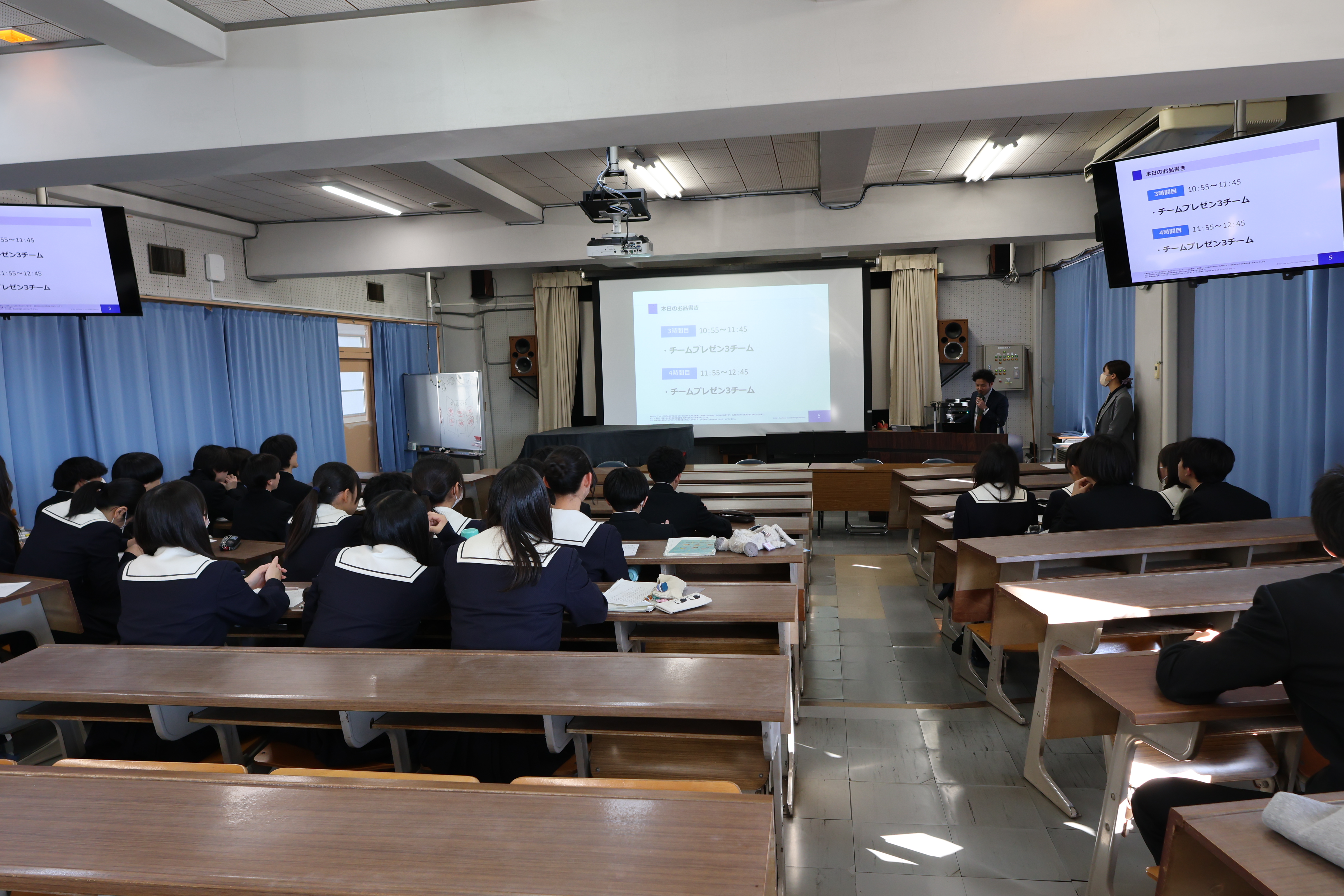 本講座では、「サンメッセの新事業」をテーマに、生徒が6チームに分かれ、新規事業の企画立案から提案までに取り組みました。