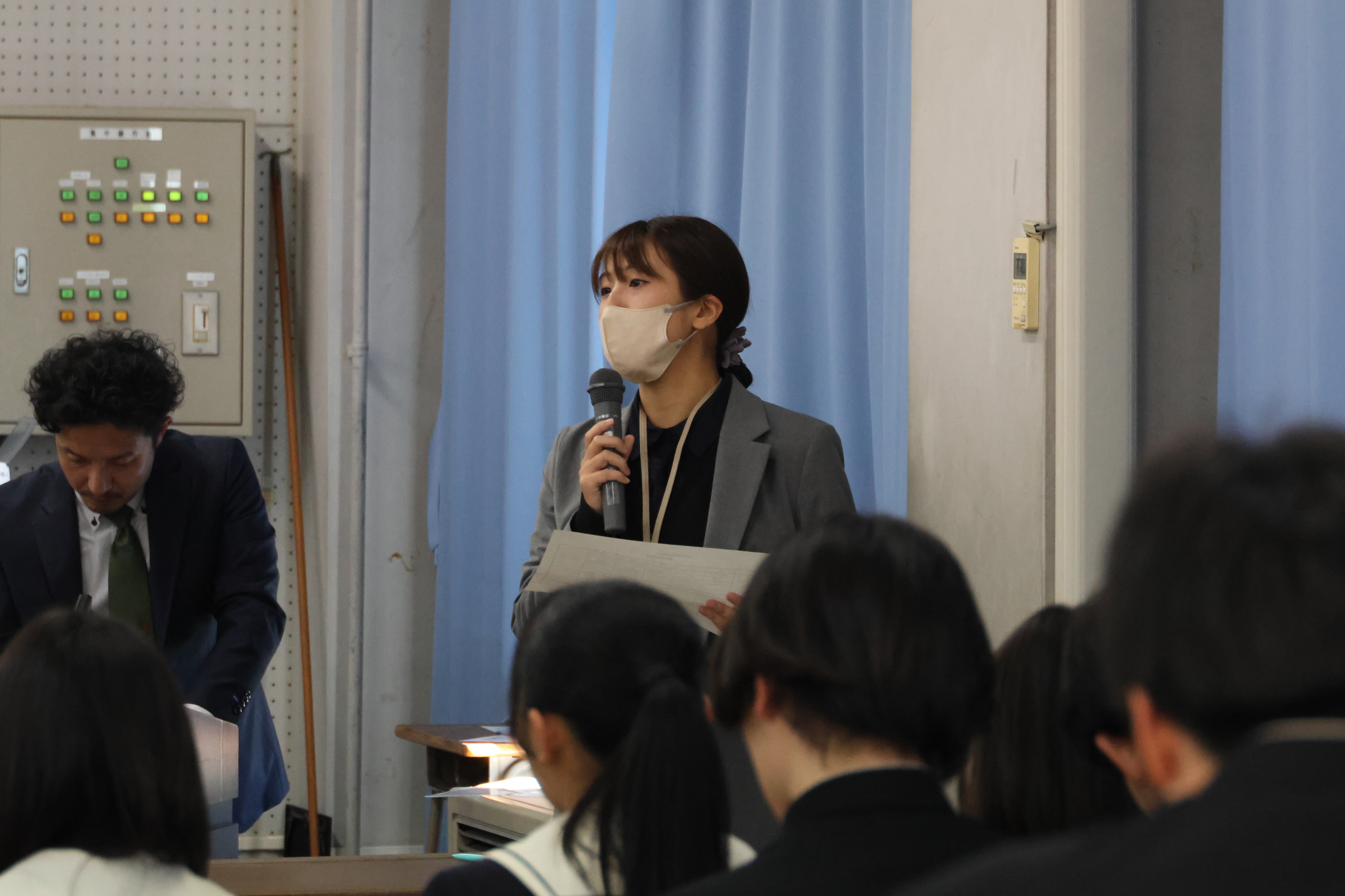 最終回となる第5回目の授業では、各グループによる最終発表を実施しました。生徒たちは、身近な社会課題を起点に、アンケート調査やWebリサーチなど独自の調査を行い、その結果をもとに課題を可視化。サンメッセの強みや事業特性を活かした新事業アイデアを発表しました。
